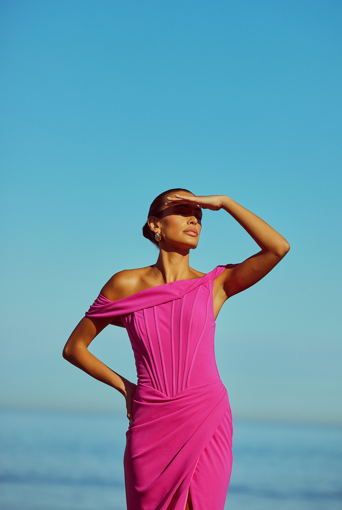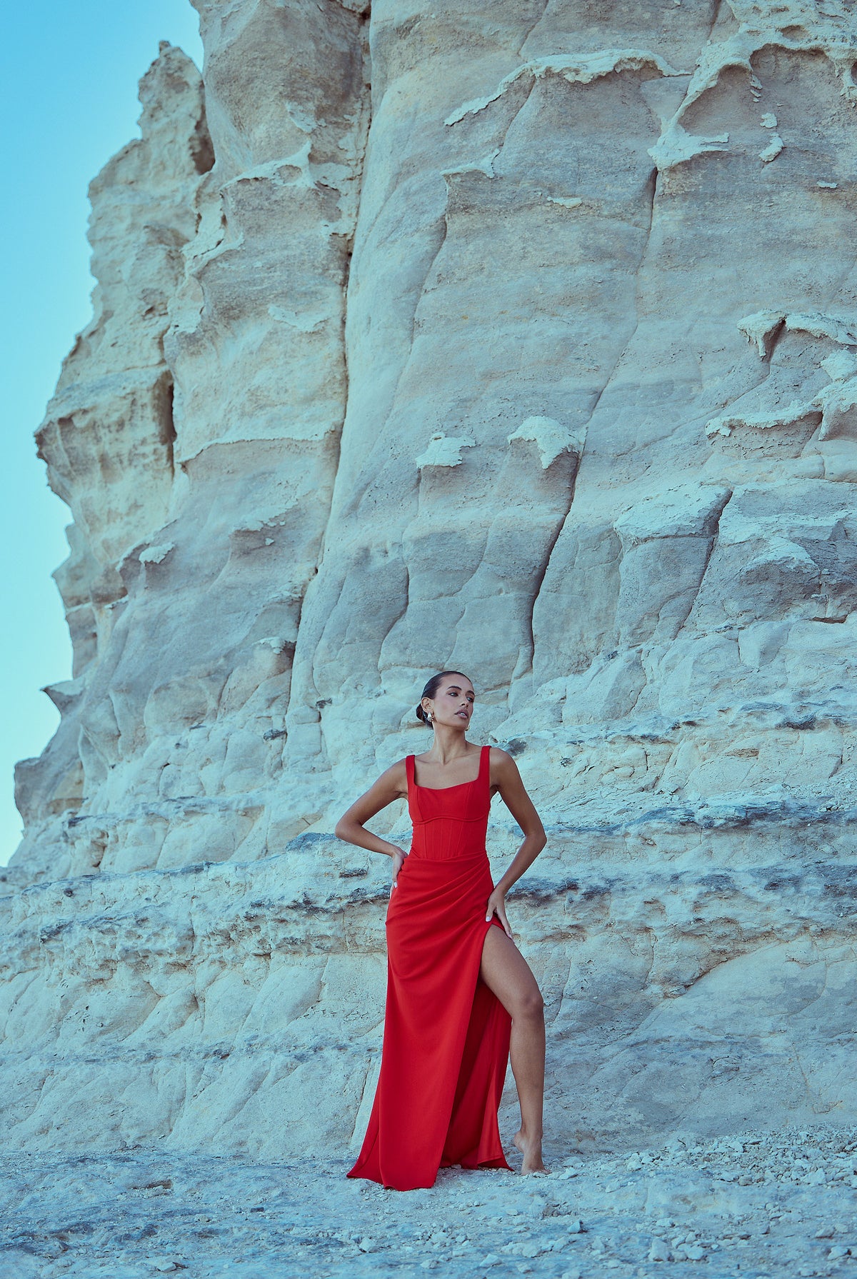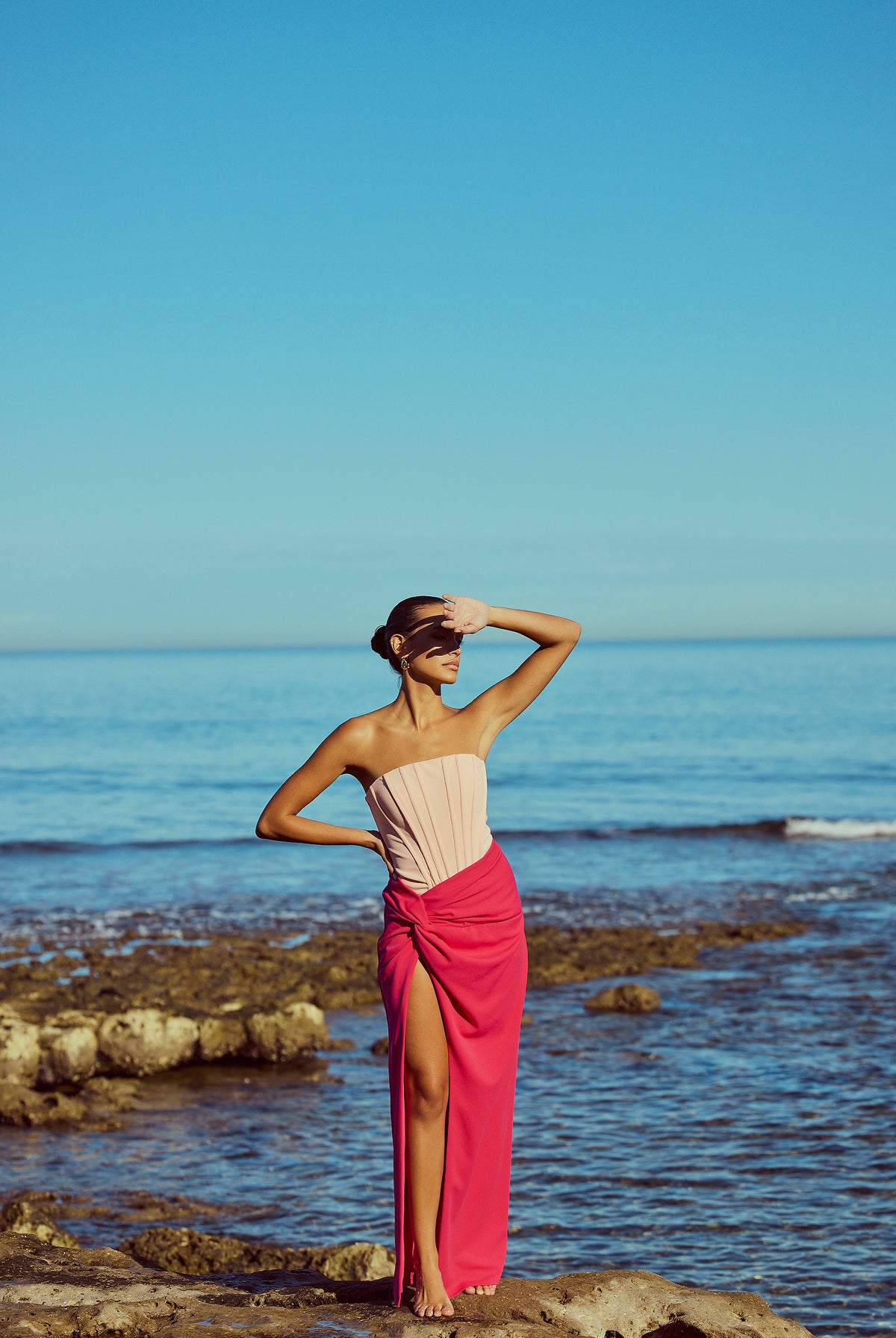 Sotiria is made for the woman who walks with purpose and lives in colour. Drenched in vivid jewel tones - ruby, fuchsia pink, metallic gold and vivid teal - each piece is a testament to transformation, motion, and strength.