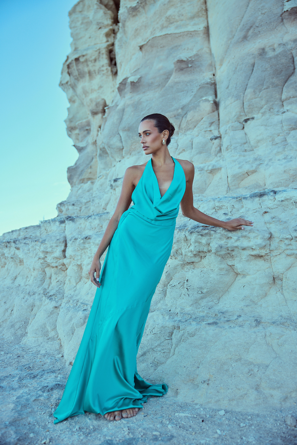 Phoebe Cowl Neck Gown - Teal