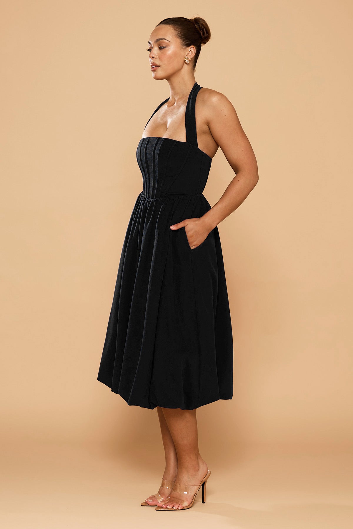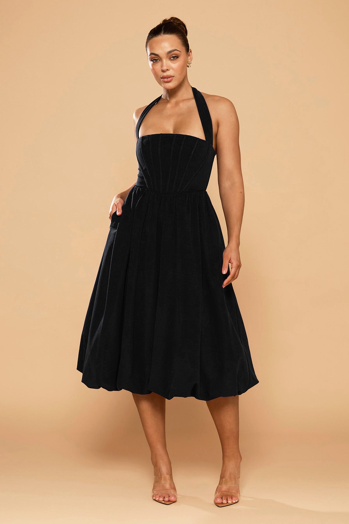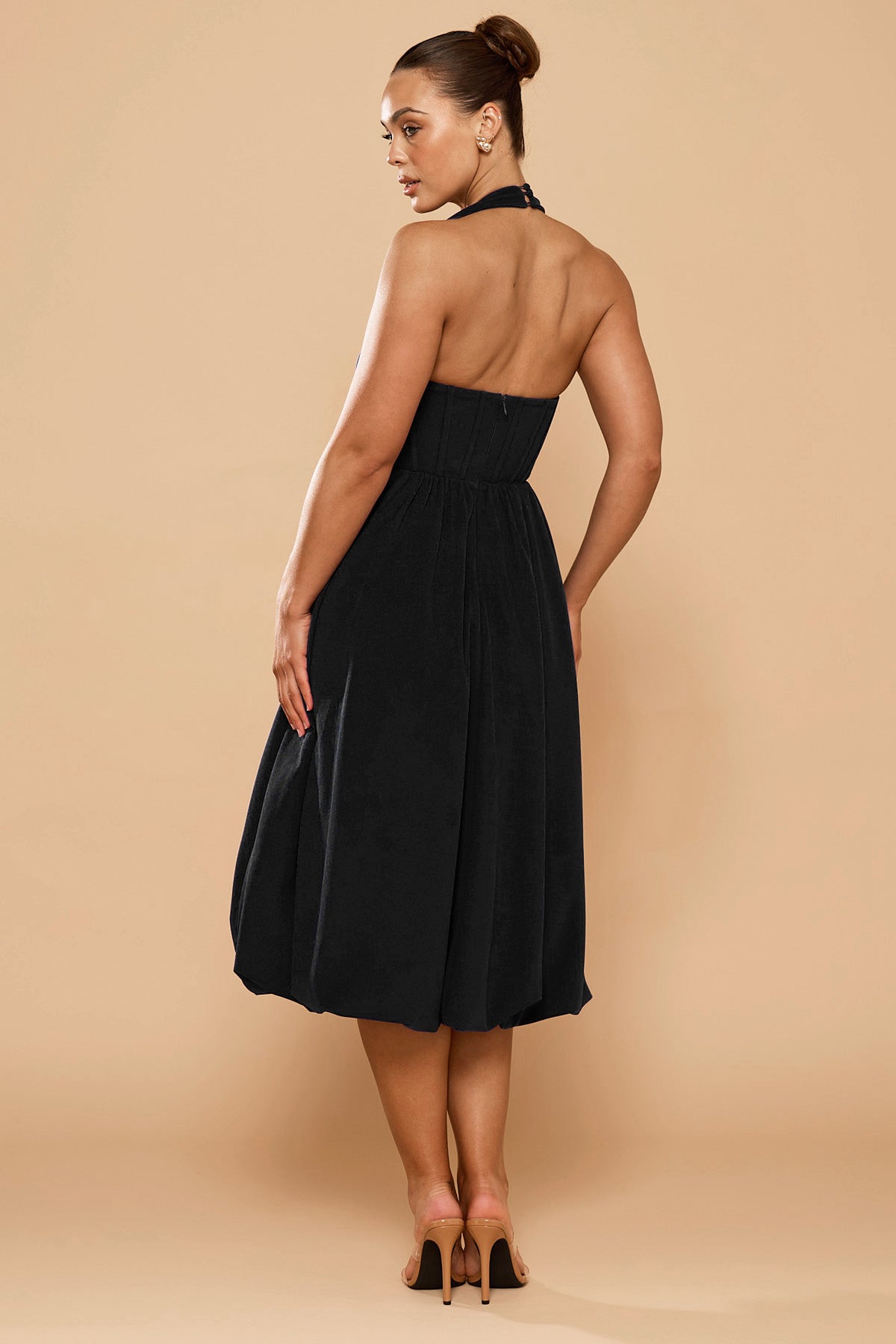 Sofia Halter Bubble Midi Dress - Black