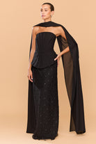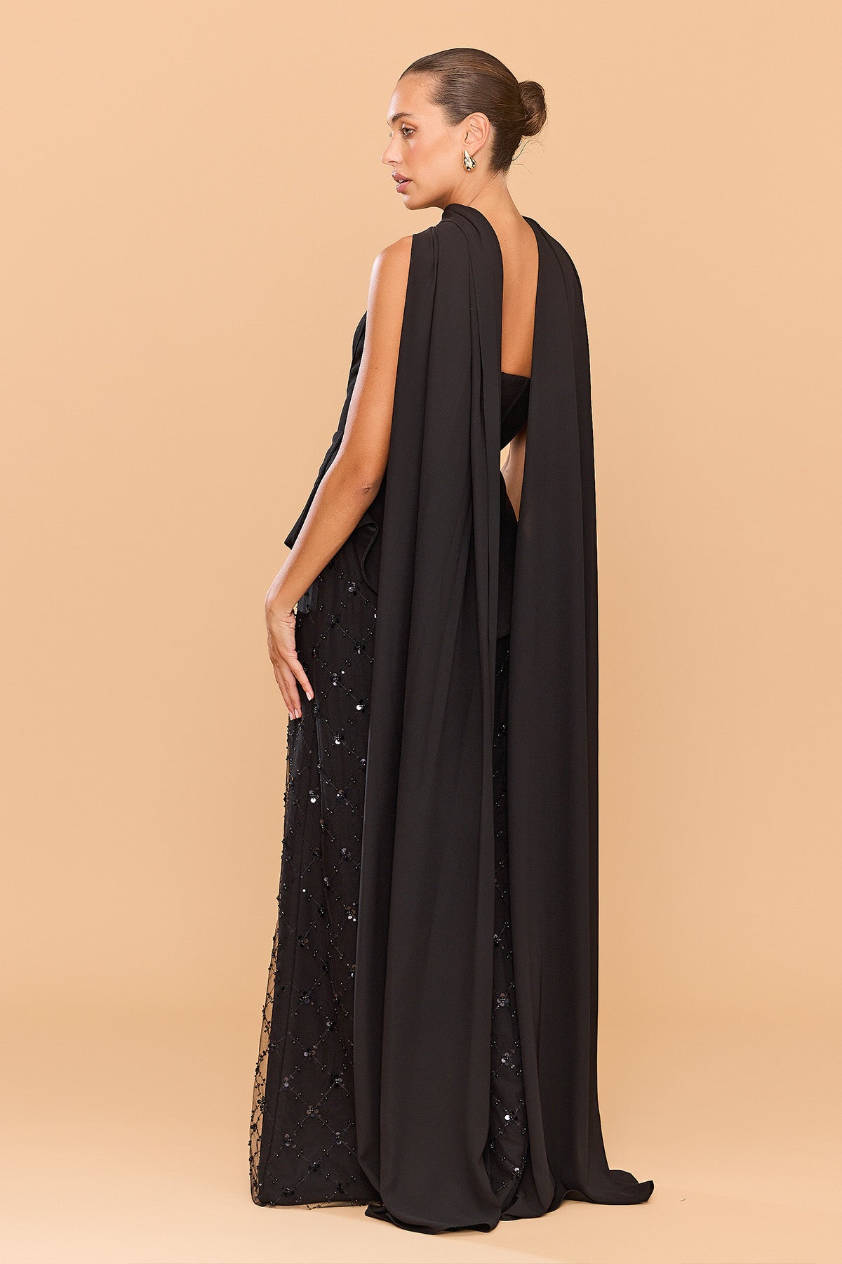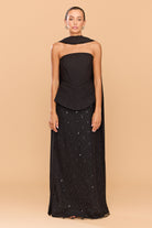 The Amethyst Beaded Skirt is a statement piece of refined elegance and intricate craftsmanship. Hand-embellished with tonal beads in a delicate diamond lattice pattern, this skirt shimmers softly with every movement, exuding quiet luxury. The full-length silhouette offers graceful fluidity. Pair with the Cleo Top and Scarf or your favourite Tuxedo Blazer for the ultimate look.